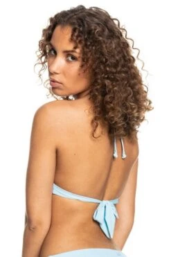 Das sommerliche Triangle Bikini-Top von Roxy in Hellblau unterstreicht das Sommerfeeling.